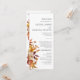 Bröllopsprogrammet har en rustik utformning med brunt blad och hösten höst färger. Det omfattar löv av elegant blommigt och botaniskt inslag, utstrykning av fallande jordartston och utandning av blommigt av vintage. I programmet beskrivs ordningen för ceremonin med klassens typografi och är designad med visuella drag för en charmig känsla. Perfekt för en höst bröllop. Helt Anpassade. Anpassa den med dina detaljer.
