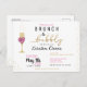 Alla kärlek ett mimosa! Fira den blivande briden med denna vackra, rustiska brunch och ett bubblande inbjudningskort för möhippan-vykort med ett faux-guld-champagneglas med bubblor, ett vackert rosa hjärta och parets initialer. Den här inbjudan är perfekt för en dusch i vår bröllop