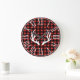 Rustic Buffalo Check Play & White Hjort Antlers Stor Klocka