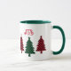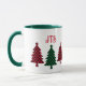 I helgdag har du mugg som charmig Julgranar i rött och svart och grönt och svart buffel plaid, med ditt eller ditt mottagares monogram initialer i finare röd typografi ovanför. Fira helgdagarna eller varje dag när du dricker ditt yngkaffe eller suger på ditt kanelkryddte. Kopp som visas här har en färgad för grönt av skog, insida och handtag, men du kan ändra den till röd eller välja andra alternativ för mugg, kopp och stein.
