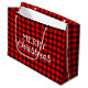 En enkel röd och svart buffel pläderade mönster. Text kan vara personlig.