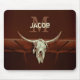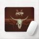 Western skalle av nötkreatur med monogrammet land cowboyen gammal, rustic office horiontal mousepad. Vintage brun bondgård i back to school. Gamla vilda western cowboyantique stil. Coola, trendig, modern utformning av husdjur. Upphovsrätt Marg Seregelyi Fotography.
