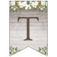 Rustiskt trätema med brun och vit blommigt "Det är en flicka", babydusch party som buntar flaggor.