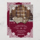 De romantiska julbröllopsinbjudningarna som inspirerats av burlap-hjärtan på en lada, burlap och snöre-bakgrund är perfekt för att bjuda in dina gäster till din burgunda rustik land/bakgård/lada-bröllopsfest.