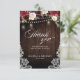 Strängen Rustic land ljus och Mason burk med burgundy, rött, Marsala, maron, elfenben, färg blommigt bouquet och eucalyptus löv på inbjudan till bröllopsbröllop med träbakgrund. Kontakta mig om du behöver hjälp med anpassning eller om du behöver någon annan produkt med den här designen.
