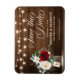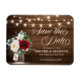 Strängen Rustic land ljus och Mason burk med burgundy, rött, Marsala, maron, elfenben, färg blommigt bouquet och eucalyptus löv på träbakgrunden i bröllop spara datum magnet. Kontakta mig om du behöver hjälp med anpassning eller om du behöver någon annan produkt med den här designen.