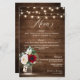 Strängen Rustic land ljus och Mason burk med burgundy, rött, Marsala, maron, elfenben, färg blommigt bouquet och eukalyptus löv på bröllop-menyn med träbakgrund. Kontakta mig om du behöver hjälp med anpassning eller om du behöver någon annan produkt med den här designen.