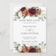 Announce your day with this elegant save the date card! This Rustic Chic Wedding Save the Date Card showcases a stunning watercolor floral arrangement in rich burgundy, ivory white and warm rust orange hues. Perfectly designed to match our Somerset wedding collection, you can easily personalize it with your details. Simply press the "Edit Using Design Tools" button to customize the text style and placement. Coordinating items available in store. (c) The Happy Cat Studio