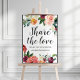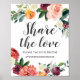 Snyggt bröllop poster skylt inbjudan gäster till " Kärlek" genom att dela med sig av sina foton med en särskild bröllop hashtag på social-medier. Utformningen har en vattenkrans med sommar- och fallande blommigt med vackra ro, dahlier, peonblommor och grönska, i en fantastisk höstpalett med burgrödröd, gyllene gult, persikofärgad orange, rosa och nyans av grönt.