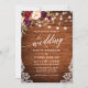 Rustic Wood, Modern Calligraphy Script, Watercolor Burgundy Blommigt Bröllop Snöre Invation with Burgundy and Rosa ros. String Ljus.