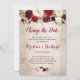 Rustic Burgundy Red Blommigt Ändra datumkort Inbjudningar
