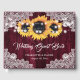 Komplettera din burgundiska rustiska bröllopsfest med den här solrosgästen bröllop bok med solblommor på en rustisk trä och snöre bakgrund. Matchande objekt är tillgängliga.
