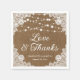 Rustic Burlap Snöre Kärlek och Tack Bröllop Pappersservett