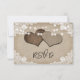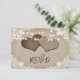 Romantiskt OSA kort av det romerska, rustiska landsbyggsbröllopet inspirerades av sammanbrott och snöre. Anpassa enkelt dessa svarskort för rustiskt landsbyggsbröllop i vintage med brännhjärtkort på en tryckt bakgrund som är märkt med ljus och vit blommigt snöre.