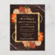 Gorgligt orange från den brinnande Rustic Watercolor-blommigten faller automatiskt på en brunt träbakgrund med guld-folie gräns och sträng ljus