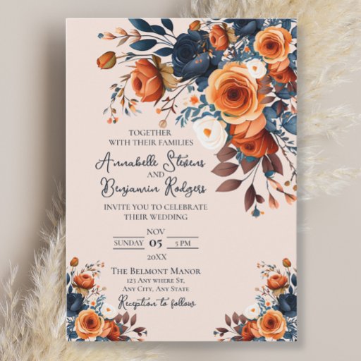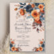 Rustic Burnt Orange och Blue Blommigt Bröllop Inbjudningar
