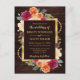 Brinnande orange i Rustic Watercolor och blommigt med rött fall av autumnala blommor på en brunträbakgrund med guld-folie gräns