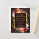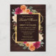 Brinnande orange i Rustic Watercolor och blommigt med rött fall av autumnala blommor på en brunträbakgrund med guld-folie gräns