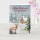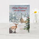 God jul för ett vänkort med en charmerande scen av en land i skogen med en hjort i snö och tankfull vers.