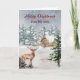 God jul för son-kort med en charmerande scen av en rustisk land-stuga i skogen med en hjort i snö och tankfull vers.