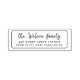 En enkel returadress frimärke, med ett klassiskt ram. Din familj namn visas i ett skript för rustic-stil med returadress eller kontaktuppgifter för anpassningsbarna nedan. Använda Zazzles anpassning verktyg för att redigera texten och göra den till din egen. Det här är självfärande gummi frimärke - välj höljet och bläck färg enligt dina önskemål! En träversion av frimärke finns i min butik. Jag kan gärna skicka några frågor till mig - jag är lycklig för att hjälpa till!