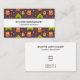 Ett affärskort med en roligt som campar mönster. Sätt på en rödbrun bakgrund. Inslag i mönster omfattar en campingbrand, tält, en gitarr, en shovel och ryggsäck.