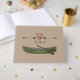 En gästbok för bröllop med en illustration av en grönt canoe och pilar på framsidan. Anpassa texten på framsidan så att datum för namn och bröllop inkluderas. Matchande bröllopsinbjudningar och andra samordnande produkter finns på Jill's Paperie.