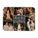 Elegant Rustic Chalkboard Multi Photo Collage Bröllop Calligraphy Tack Magnet. Snyggt bröllop tackar dig för att du har en kortmall med sex (6) foton. I mitten på mörk grått eller svart block färg/svartbräde med texten "Tack" i ett handskrivet typsnitt av typografi i vitt färg. Liten hjärtform mellan namn. Enkel att anpassa den. Söt för dina bröllop gäster. Om du behöver hjälp eller matcha objekt kontaktar du designer!