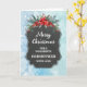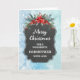 God jul för gudmoderkort med rustic land chalkboard mönster och vintern bladbete med poinsettias.