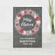 God jul för gudmoderkort med rustik land chalkboard mönster och snökrans med poinsettias.