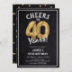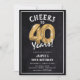 Firar att du vrider 40! Dessa 40-årsdagen för party inbjudan är designade med titeln "Cheers to 40 Years!". Med en rustik kritbakgrund, 40 heliumballonger från guld, vit trendig typografi och en enkel födelsedagsfest som är enkel att anpassa.