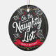 Lägg till ett litet rytm till din helgdag-dekoration med den här eleganten. Handgjord från platt cirkelformad MDF, innehåller den den vita frasen "På den stygga listan. Jag beklagar ingenting!" i att matcha typografi på en svart kritbakgrund. Varje prydnadsföremål avslutas med dekorativ filigree för att kunna överklagas vid rätt tidpunkt. Varje dekorativ vit löv och festiv röd hylsbär. Perfekt för Julgranar eller som en tänkbar gåva, kombinerar detta prydnadsföremål klassisk design med ett tips om stollig.