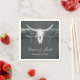 Rustic struktur grunge charcol grått white bull skalle land western cowboybröllopsservetter för pappra cocktail. Vintagens lantgård inspirerade. Gamla vilda western antika stil. Enkel, coola, trendig, modern djurdesign inom jordbruket. Anpassa skriptet. Upphovsrätt Marg Seregelyi Fotography.