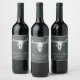 Rustic Charcol Grått Western Struktur Bull Skull Vinflaska Etikett