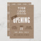 Den här roliga charmen, ändå professionell Business Logotyp Grand Open-inbjudan, har en enkel, naturlig papper och kraftfull bakgrund med kraftig texturerad vit typsnitt. Byt bara ut logotypen och uppdatera affärsinformation och händelseinformation. Grattisar och beundrare på ditt nya företag!