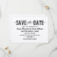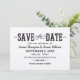 Rustic chic bröllop spara datum-kort har snyggt anpassningsbar text i westernt och modernt stil typografiskt typsnitt som kan vara personlig för ditt meddelande. Svart textdesign på kraftbrunt karddjur.