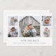 Den här eleganten har det rustiska stil bröllop spara datum-kortet en fem fotokollage med en enkel vit bakgrund och klassisk grått-text av mörk. Perfektens minimalistiska sätt att låta dina vänner och din familj veta att du är gifta sig!