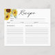 Rustic Chic Solros Bröllopsdusch Receptkort