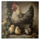 Rustic Chicken Hen with Chicks Kakelplatta