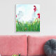 En utskrift av en vattenfärgsmålning av konstnären D. Carrasco med en höna och röda vallmo.