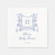 Cute blue vintage inspirerade babyduschservetter med en vit hand plockade blommigt monogramvapensköld med fjärilar och ett snabbt handskrivet teckensnitt.