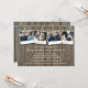 En viltvårdad träslatt i yta står som bakgrund för denna möhippa som inspirerats av gehör. En garderoll stryps över brädorna med foton som hålls på med kläder. Lägg till fyra av dina foton i ställe och din händelsetext under. Bilden upprepas på motsatt sida, men bilderna saknas! Lägg till registerinformation och parets webbplats. Kan också användas för en inbjudan till möhippa eller förlovningsfest. Tillgängligt med matchande produkter.