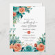 Rustic Coral Blommigt Tropical Teal Bröllop Inbjudningar