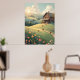Rustic Countryside Cabin with Wildflowers Poster
