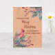 God jul för kusin och hennes familjekort med rustik vattenfärg, grön och kardinal och vintage pappra mönster.