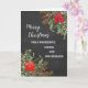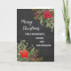 God jul för kusin och hennes make-kort i rustiska vattenfärgspoinsettias, bladbakgrunden och den krita som används.