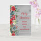 God jul för kusin och hennes make-kort med grönt vattenfärgsblad, rustiskt trä mönster och pinekoner och tankfull vers.