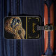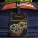 Saddla upp stil med den här djärva luggagetaggen och belysa en vit och guld akustisk gitarr med exquisite cowboyartistry, med en slående svart bakgrund.
