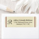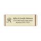 En faux texturerad bakgrund av rustik krämdeskasta dekorerar dessa eleganter, monogrammade returetiketter. Två lodräna roust färgad linjer klär upp det. Texten är svart. Du kan enkelt lägga till din MONOGRAM, NAMN och ADRESS. Dessa etiketter är perfekter för inbjudningar, tackkort, hembiträden - vilken tillfälle som helst! Alla Höger förbehållna © 2014 Alan & Marcia Socolik.
