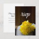 Anpassa det charmerande Rustic Daffodils- och Barn Wood Land Vår bröllop-svarskortet med ditt giftermål-svarsdatum för din avslappnad ännu i klass mars, april eller maj vårtid på lantgård eller gårdar i stil. Dessa kort för informella och elegant anpassningsbar r.s.v.p. har ett foto med en blommigt av en bukett av blommar av gult narcissus blomma med en vit möhippa veil och en avvandd brun lingbakgrund.